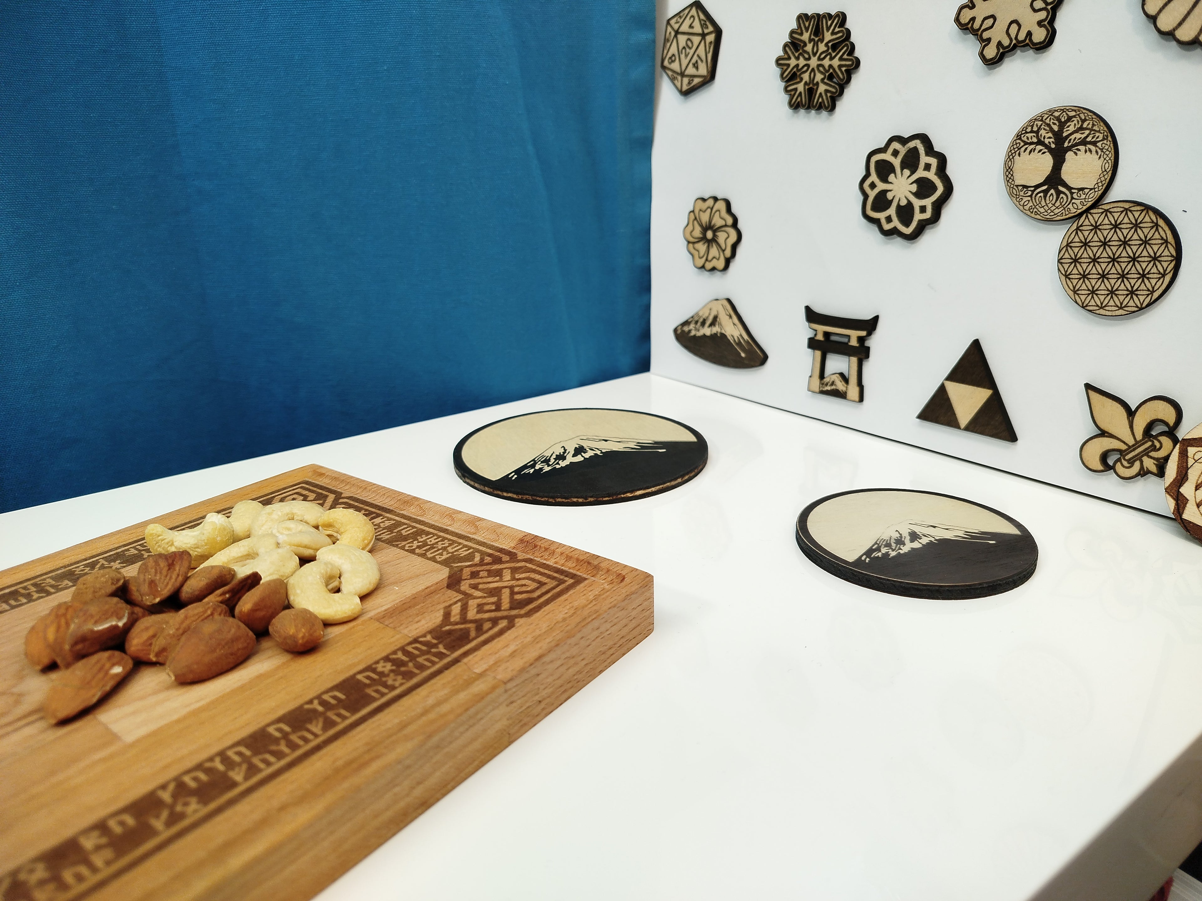 Magnets en bois gravé, capable de s'accrocher sur des surfaces en métal (aimanté).